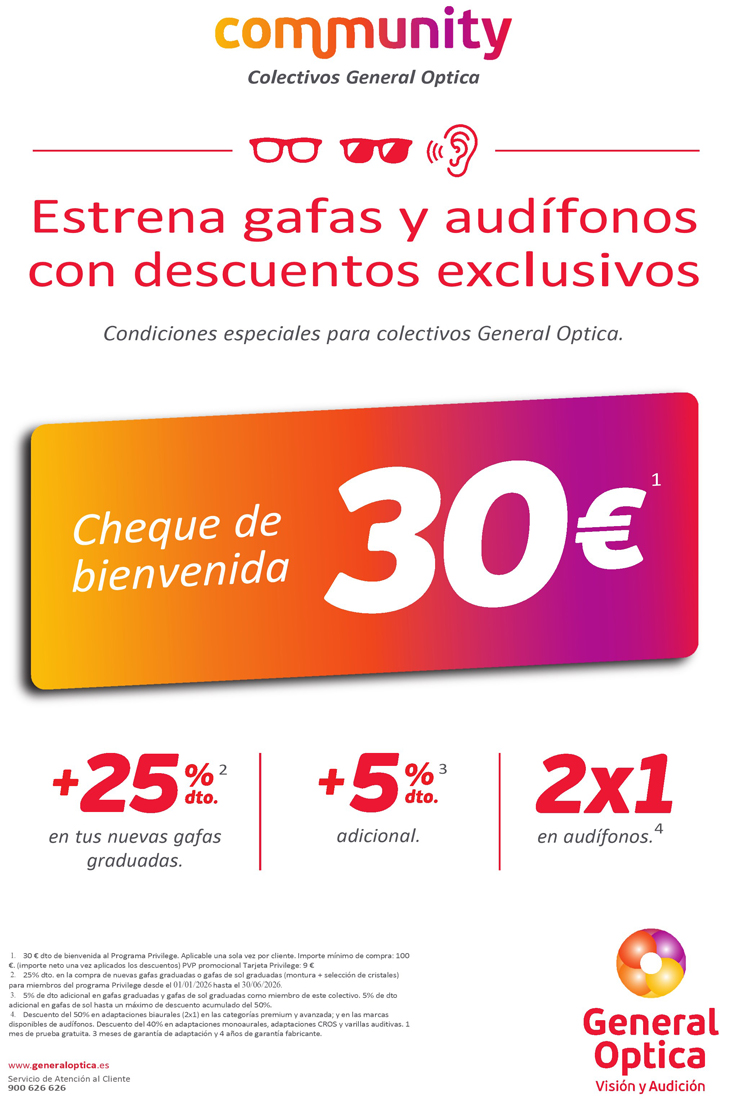 NOTA: Disfruta de estas ventajas entregando tu carnet de colegiado en cualquiera de los centros General Optica de Huesca y Zaragoza.