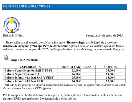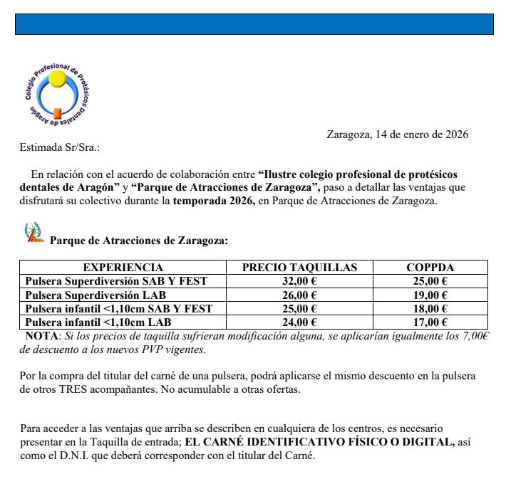 NOTA: Para disfrutar de estos descuentos y ventajas deberás mostrar el carnet de colegiado.